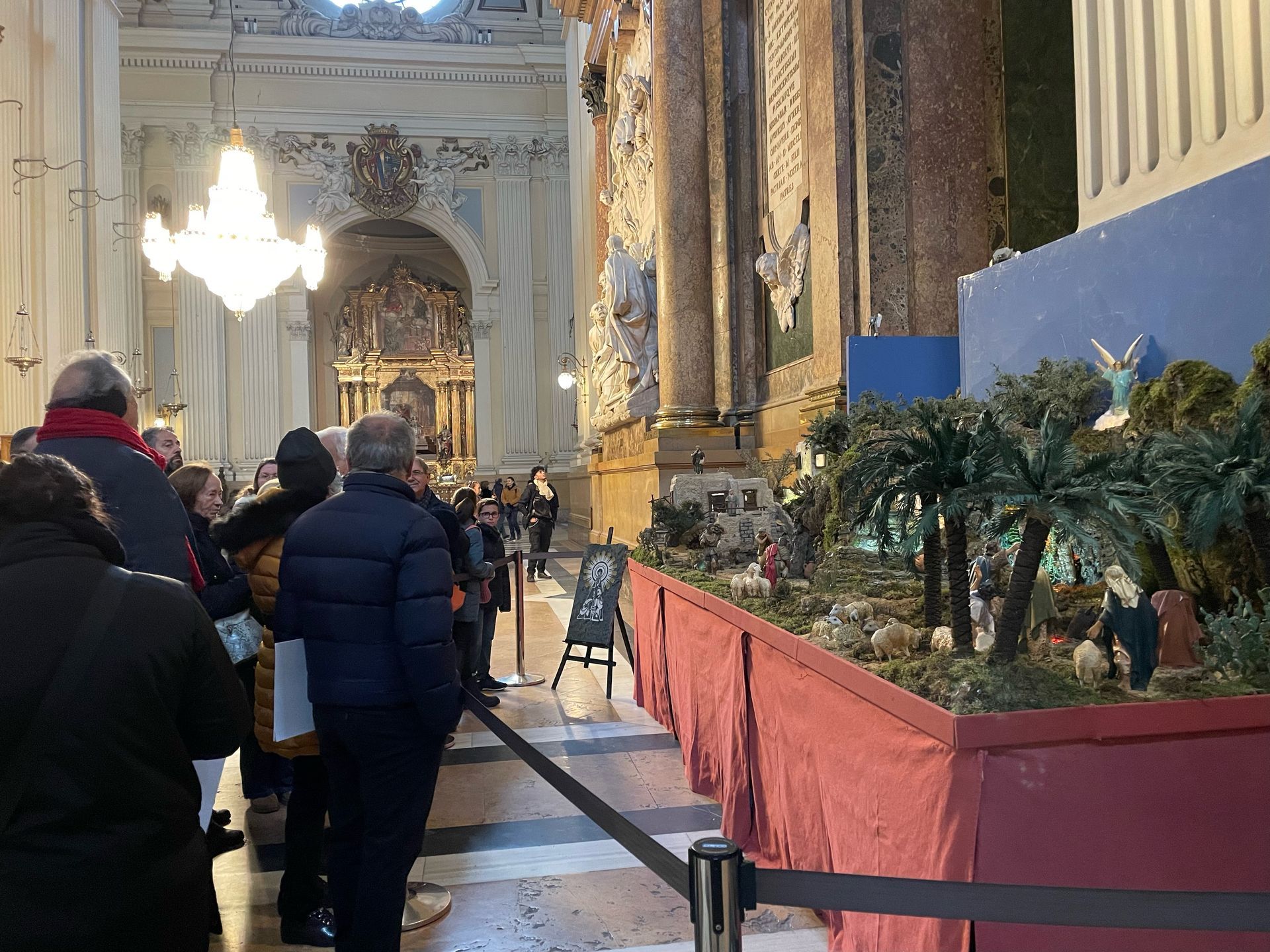 - Basílica del Pilar -trasaltar de la Santa Capilla- donde vemos una obra de la Asociación Amigos del Belén, con figuras de Olot propiedad del Cabildo.