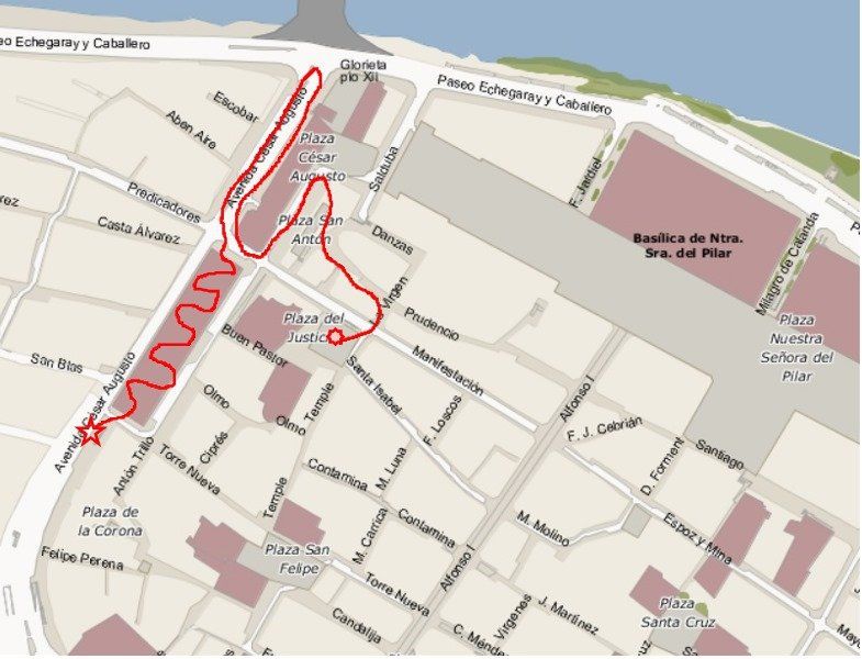 Nos encontramos en César Augusto, junto a la parada del tranvía, acera de bajada hacia el mercado, a las 10:30 horas, para dirigirnos hacia él. Antes tiramos unas fotillos a la portada de la Iglesia de los Escolapios.